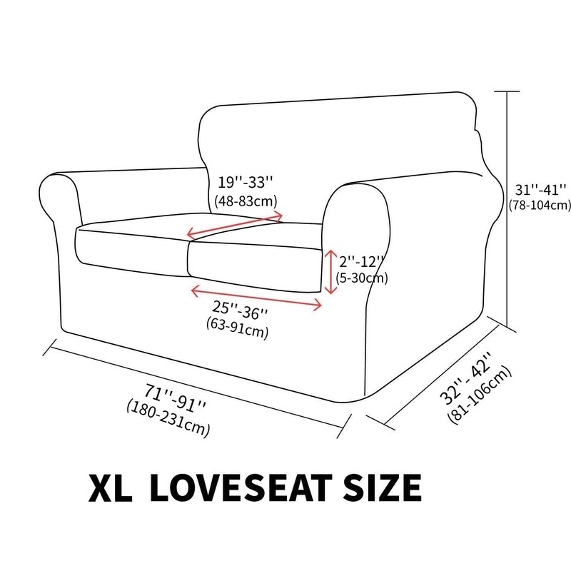 - SIZE CHOOSE - Our full couch covers for sofa are one-size-fits-most. Best Fits for CHAIR COVER 31-46″(78-116 cm), LOVESEAT COVER 55-69″(139-175 cm), SOFA COVER 71-91″(180-231 cm), XL SOFA COVER 91-110″(231-279 cm). Refer to the MEASURING GUIDE in photos, measuring your sofa size and cushion size before purchasing. If it's between two sizes, select the larger one. (Note: XL sofa cover only has three cushion covers)