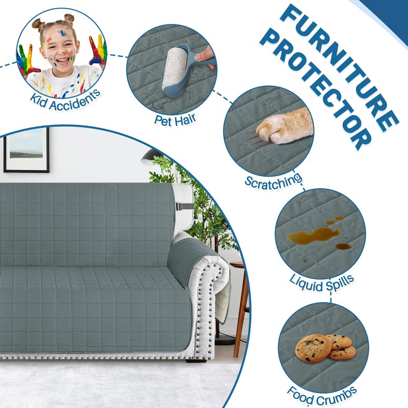 - [Anti-slip design - Refuses to slide & No need for frequent adjustments] Our pet sofa slipcovers adopt a non-slip backing with slip resistant grip dots to help keep the furniture cover in place. Featuring adjustable elastic straps, the couch protector for dogs won't slip easily, whether someone is sitting on the sofa, a child is bouncing on the sofa, or the pet is playing on it.