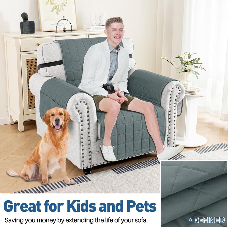 MAXIJIN Waterproof Chair Cover Chair Slipcovers, 23.5" Quilted Armchair Cover Sofa Slipcovers for Pets Dog Couch Cover Protector with Elastic Strap & Side Pocket (Chair, Dark Gray)