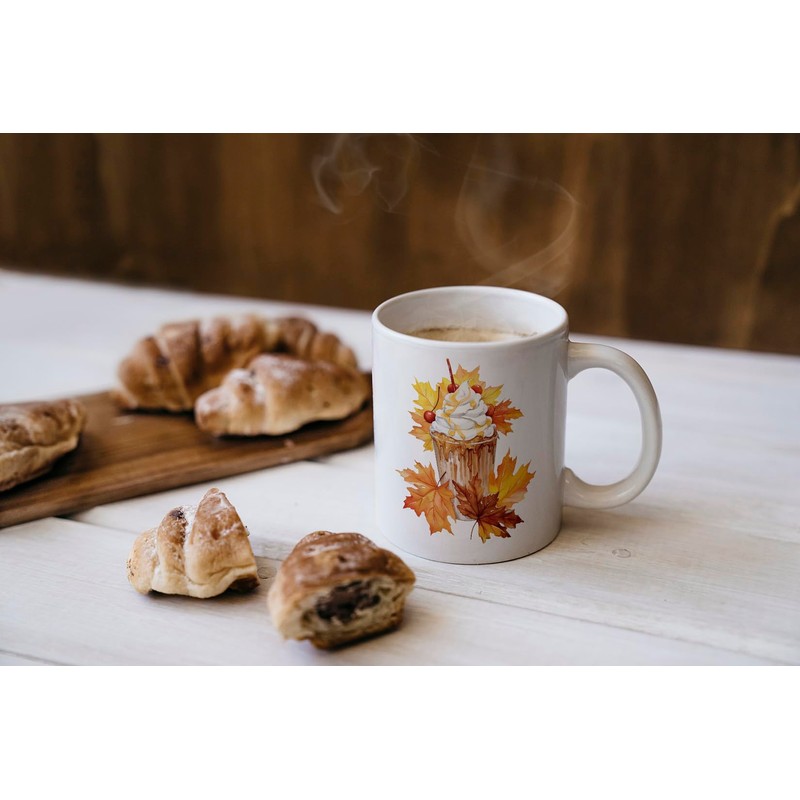 MAXIKIWI Glatte, langlebige Keramik-Kaffee- oder Teetasse für Zuhause oder Büro, perfekt für jeden Anlass, Herbstkaffee-Thema, 2–350 ml