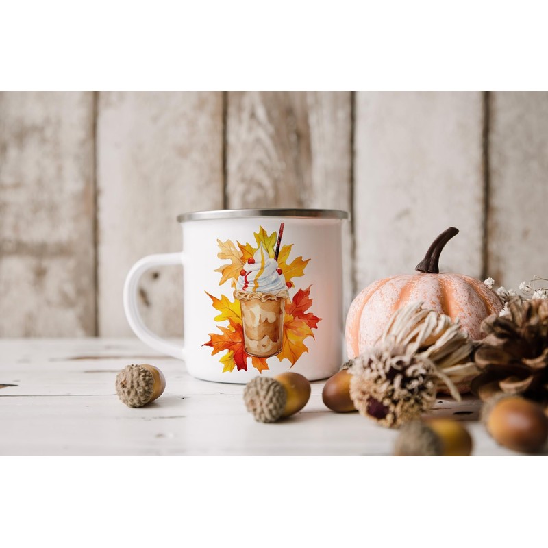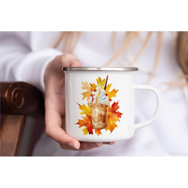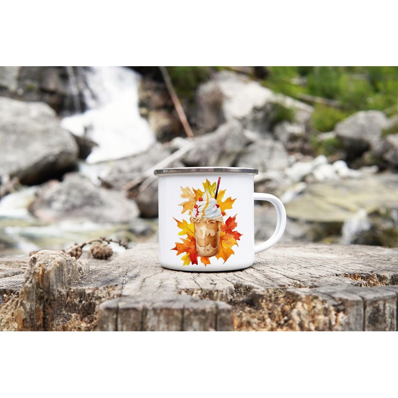 MAXIKIWI Langlebige Emaille-Kaffee- oder Tee-Camping-Tasse für drinnen und draußen, Herbstkaffee, 350 ml