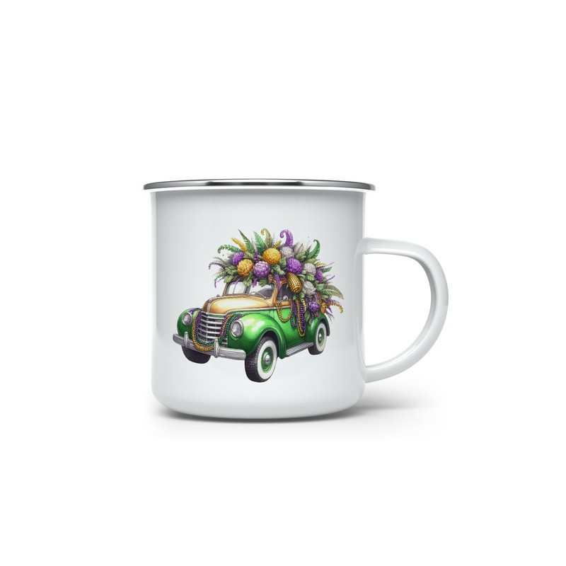 MAXIKIWI Langlebige Emaille-Kaffee- oder Tee-Camping-Tasse für drinnen und draußen, Mardi Gras Thema, 3–350 ml