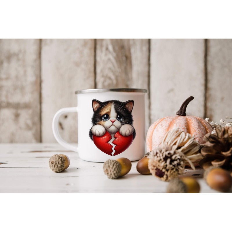 MAXIKIWI Langlebige Emaille-Kaffee- oder Tee-Camping-Tasse für drinnen und draußen, Motiv: gebrochenes Herz, 350 ml