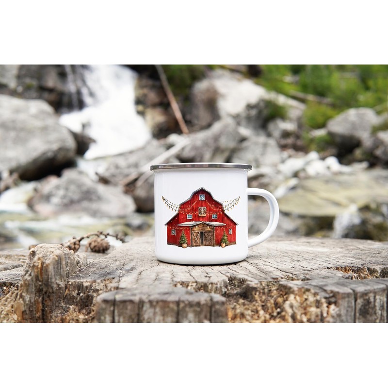 MAXIKIWI Langlebige Emaille-Kaffee- oder Tee-Camping-Tasse für drinnen und draußen, Weihnachtsbauernhof-Motiv, 2–350 ml