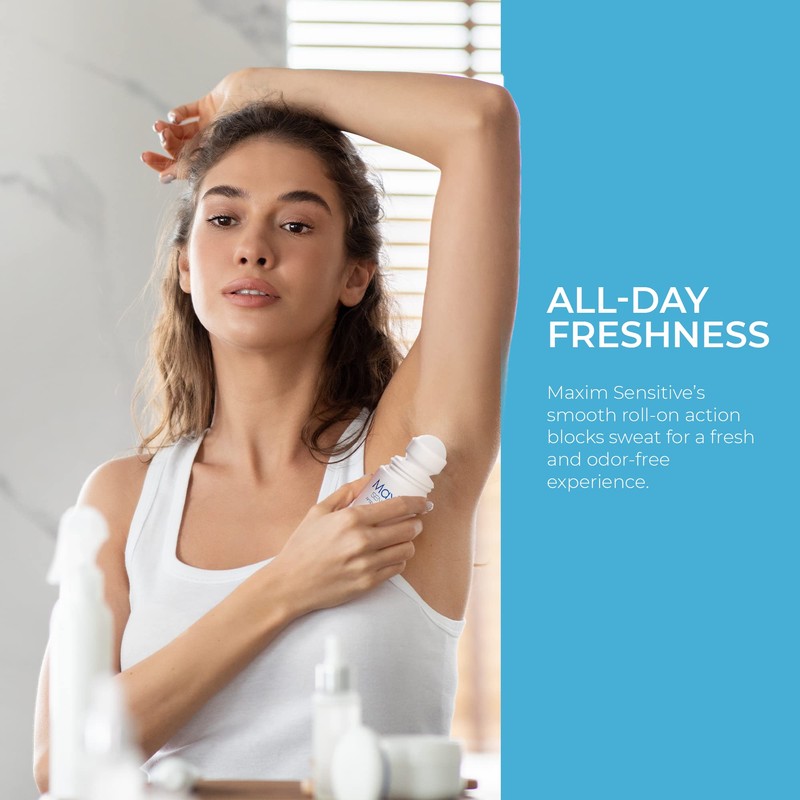 - AN ANTIPERSPIRANT FOR YOUR LIFE: The smooth roll on action of Maxim Sensitive blocks sweat, which is all you need to stay fresh and odor-free. Maxim Sensitive men's deodorant can also be used by women, teens & anyone with hyperhidrosis or nervous sweat problems.