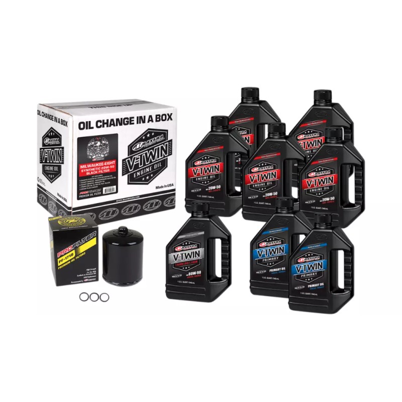Maxima Synthetic 20W50 3 Hole Oil Change Kit Black Filter Harley M8 2017-2024