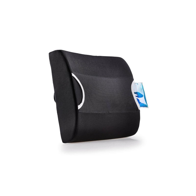 Maximex Cooling Back Support Cushion, Ergonomic Back Cushion with Effective Support Function for a Correct Sitting Position, Relieving Lumbar Cushion with Hot/Cold Pad & Attachment Strap