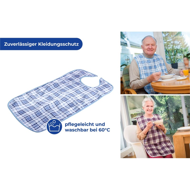 Maximex Dining Apron, Blue Chequered, Easy-Care Bib Apron with Velcro Fastening, Protects Clothes, Protective Eating Apron for Adults with Large Area Does Not Wet Through, 43 x 0.2 x 91 cm, blue
