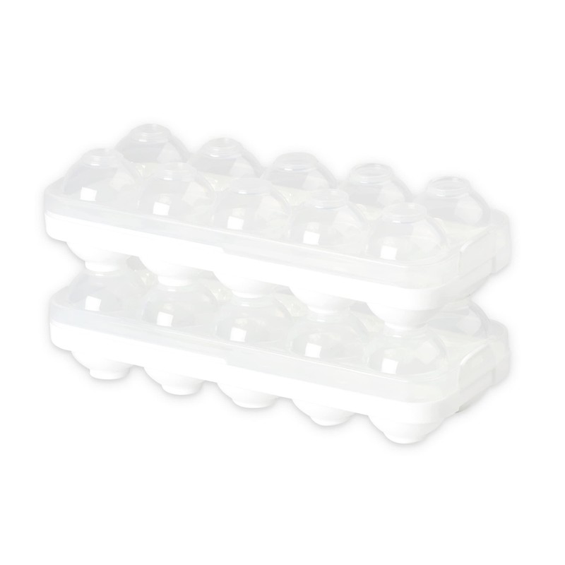 - SAFE REFRIGERATOR STORAGE Fits molded set of 2 egg storage boxes to safely store 10 small to large eggs. Thanks to the transparent click-lock lid, the eggs stay firm and the supplies are always visible at a glance