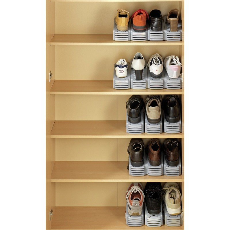 - Stack your shoes in pairs on top of one another using the shoe holder