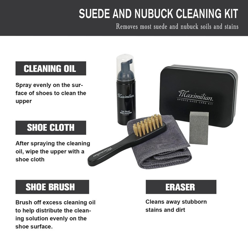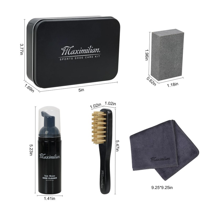 MAXIMILIAN Shoe Cleaning Kit 5 Pcs Shine Shoe Sneaker Care Kit for Shoe Care and Cleaning with Eraser, Canvas, 100% Horse Hair Shoe Brushes, Suede Shoe Cleaner, Father's Day Gift for men (Large)