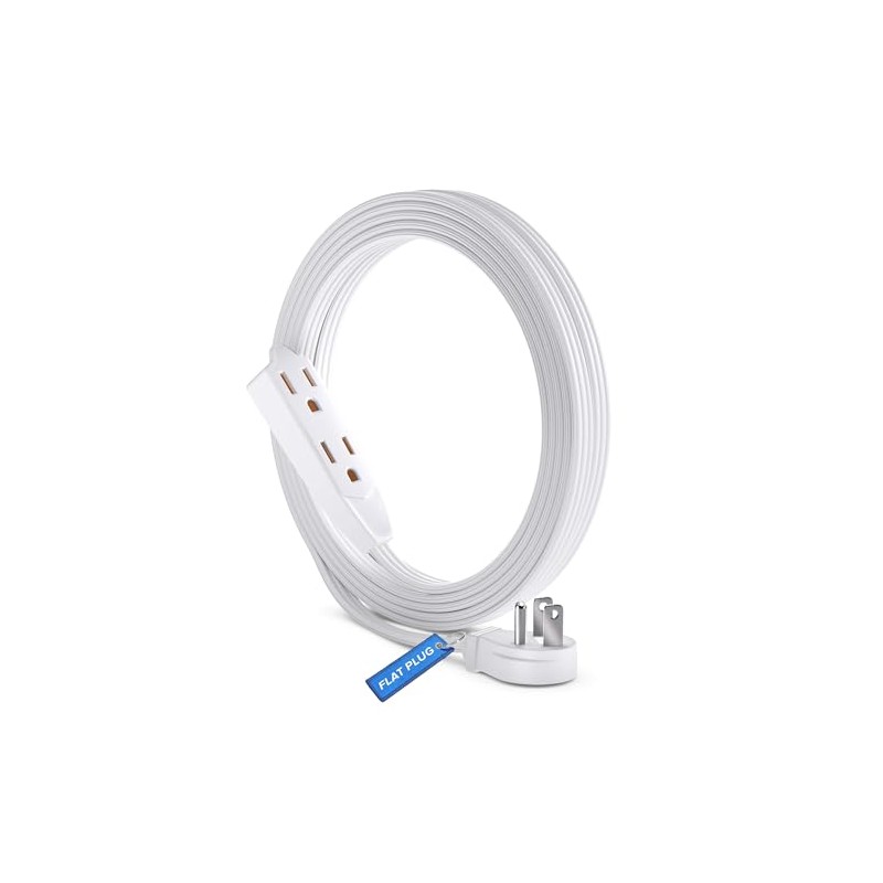 - ANGLED PLUG: The Maximm extension cord is top quality featuring a 45° degree angled flat supply plug with 3 female outlet connectors for additional power.