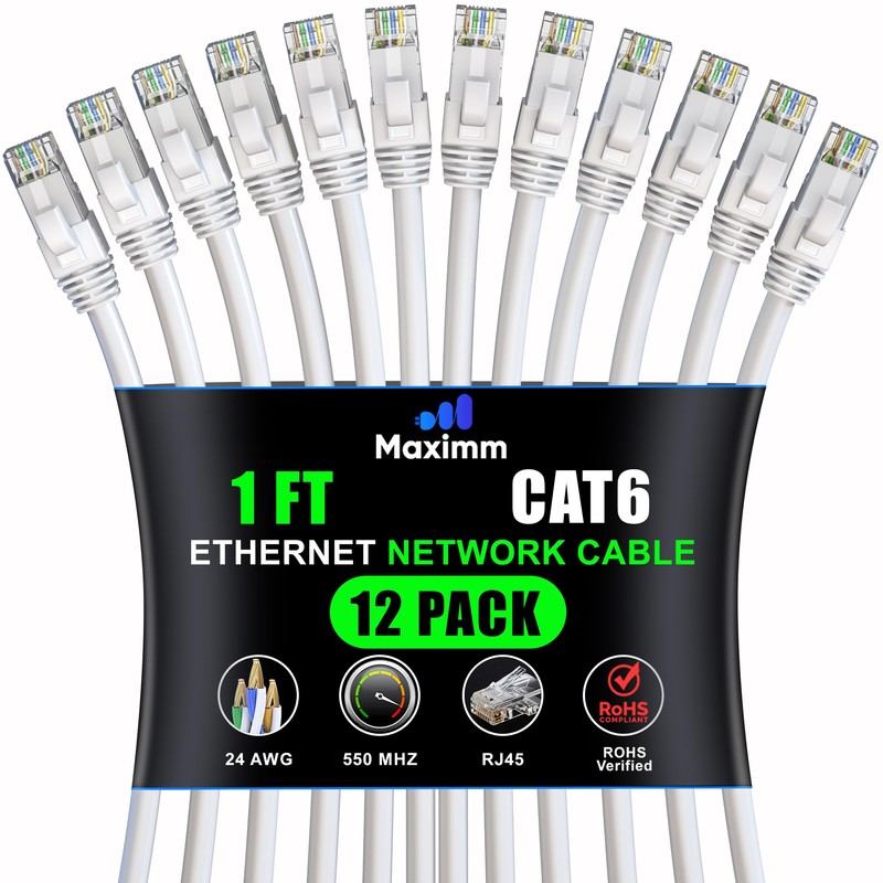 Maximm - Cable Ethernet CAT6 (1 pie), color blanco