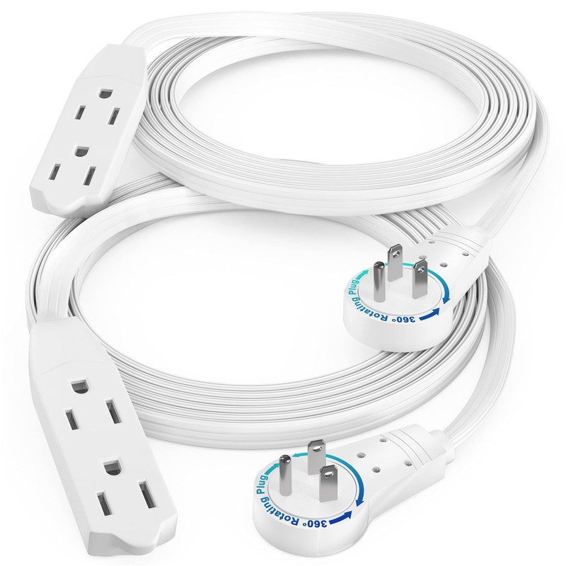 Maximm Maximm Cable 6 Ft 360° Rotating Flat Plug Extension Cord/Wire, 16 AWG Multi 3 Outlet Extension Wire, 3 Prong Grounded Wire - White - 2 Pack - UL Certified