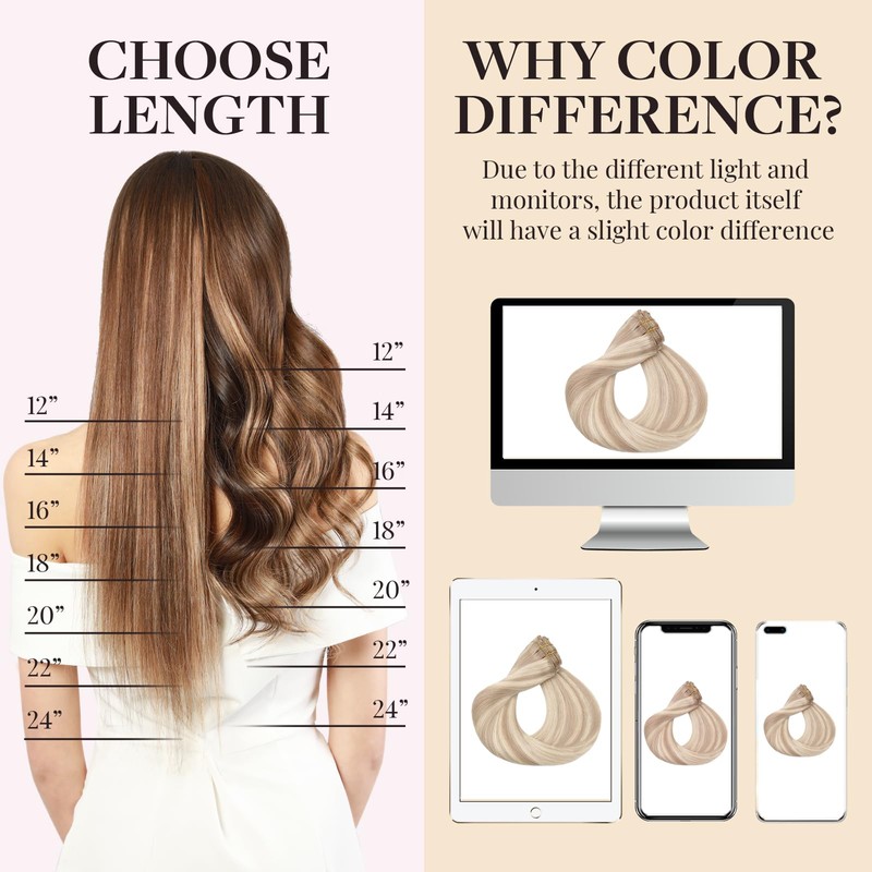 - 7pcs Clip-ins & Stylish Colors: Includes 7 pieces, 120g, in length from 12-24 inches. Available in balayage, ombre, and solid colors, ideal for daily wear or special events. Blends smoothly with your natural hair for a polished look