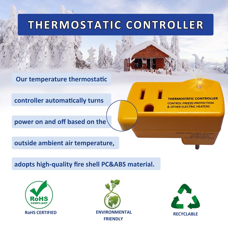 - Easy Installation: Just plug the thermostat into a power socket and plug your 120 V heating device into this thermostat outlet, you are ready to go