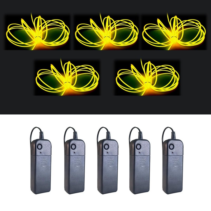 MaxLax EL Wire 5 Pack, 9ft Neon Light Wire Noise Reduction with Battery Pack (9ft-Yellow)