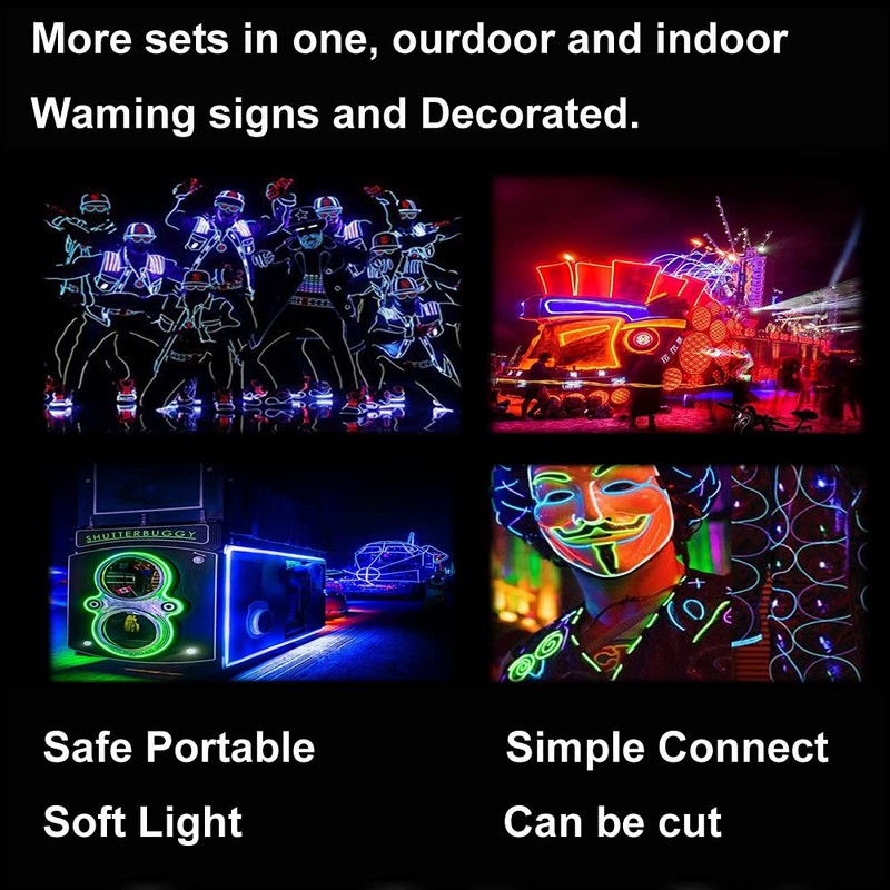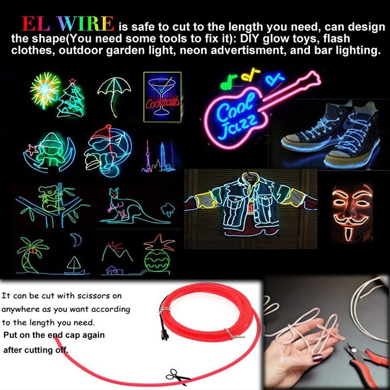 - [Safe and Durable] Electroluminescent Wire is easy to use and bright EL wire lights, no radiation, energy saving.the el wire kit is efficient lighting ,can used in clothing,diy,christmas or other festival,unleash yourself imagination for your versatile enjoy.