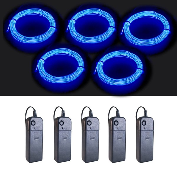MaxLax EL Wire Blue 5 Pack, 9ft/2.75m Neon Light Wire Noise Reduction with Battery Pack…