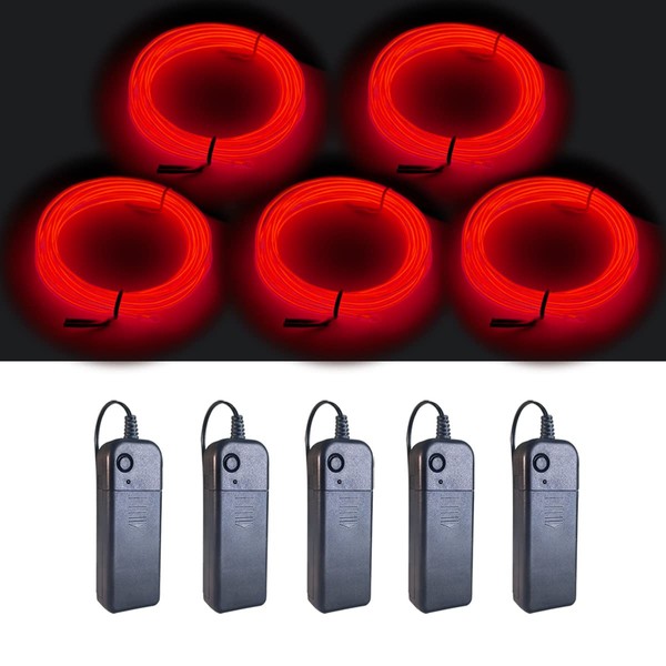 MaxLax EL Wire Red 5 Pack, 9ft/2.75m Neon Light Wire Noise Reduction with Bat...