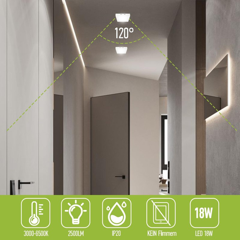 LED panel ceiling light, the colour temperature can also change according to your wishes from warm white, neutral white to cool white (3000 K - 6500 K).
