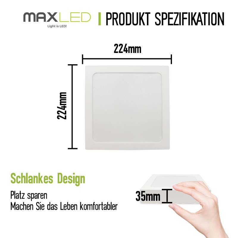 - Easy installation: Ultra flat recessed LED spotlight, the size of the lamp 224 mm x 224 mm x 35 mm, directly to the AC 220 V - 240 V, simple and safe connectors make wiring easier, ideal for indoor occasions such as bathrooms