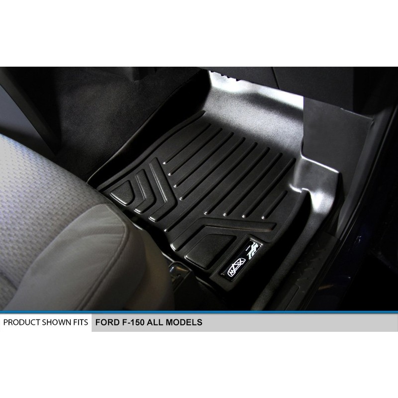 MAXLINER Floor Mats 2 Row Liner Set Black for 2009-2010 Ford F-150 SuperCab with Flow-Through Center Console