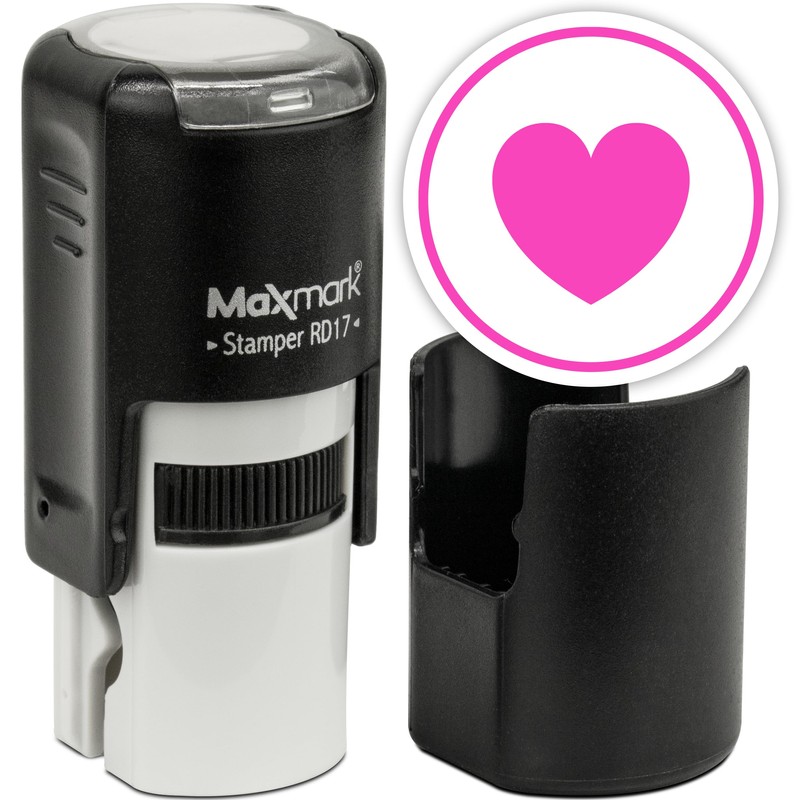MaxMark Round Self Inking Emoji Stamp - Heart - Pink Ink