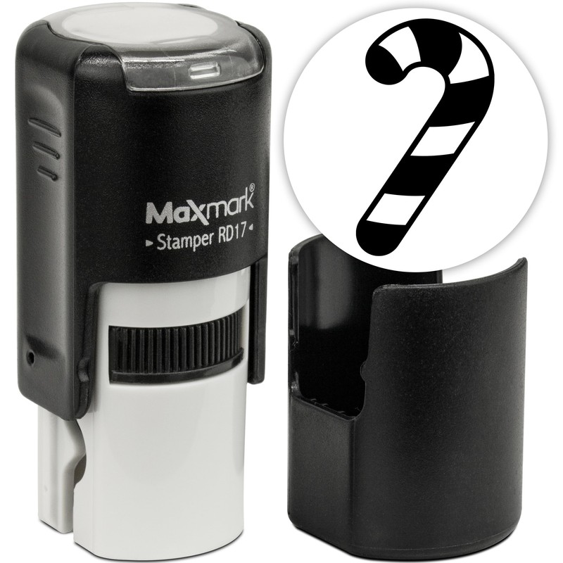 MaxMark Round Self Inking Holiday Stamp - Black Ink - Candy Cane