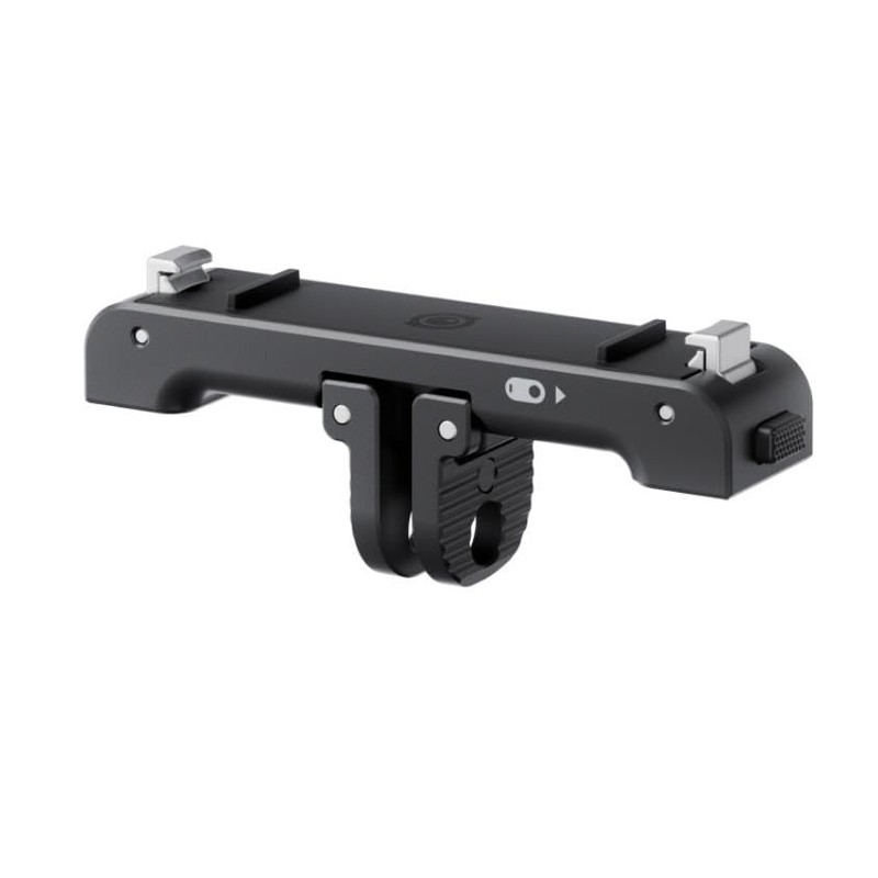 Hold the lock on both sides of the magnetic suction speed disassembly parts, and attach the GO 3 single camera or extension cabin to the quick-disassembly parts, ensuring that the direction of the camera icon matches the direction of the quick-disassembly. Press the GO 3 and the quick attachment to attach to the lock, fully engage the locks on both sides.