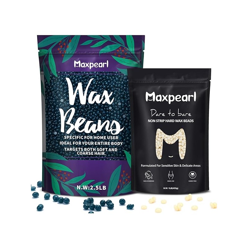 Maxpearl Hard Wax Beads Pack - 2.5LB Coarse Body Wax Beads + 1LB Fine Facial Wax Beads