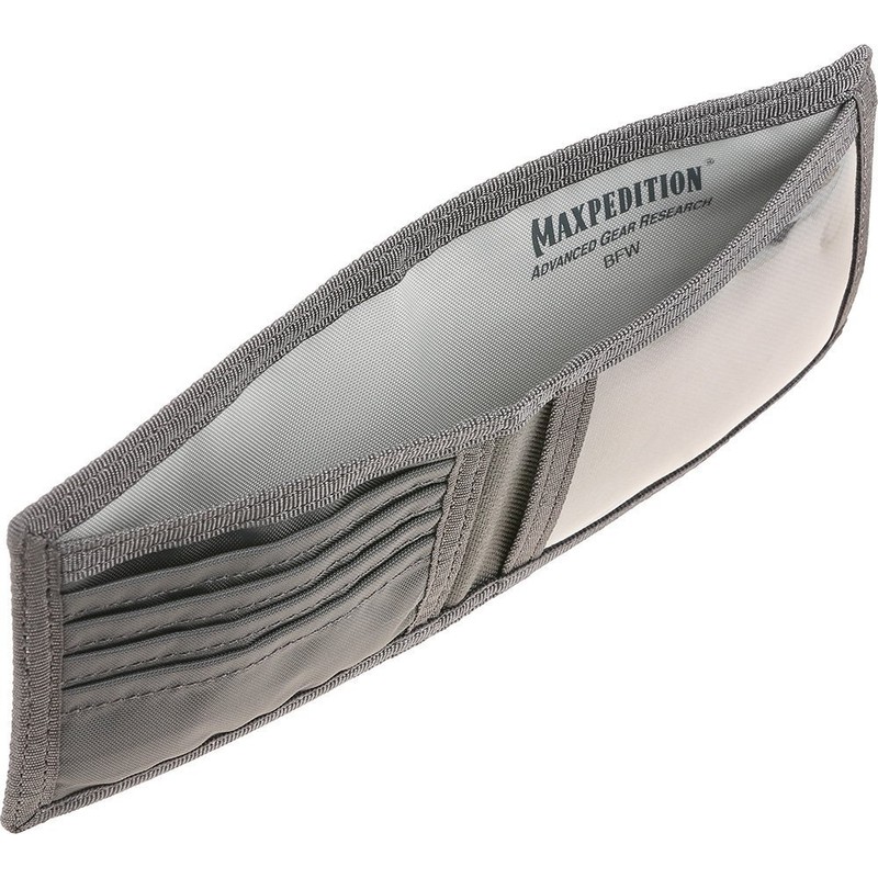 - Part of the Advanced Equipment Research (AGR) Maxpedition line. Classic slim bi-fold design. Four card compartments. Clear vinyl window for IDs