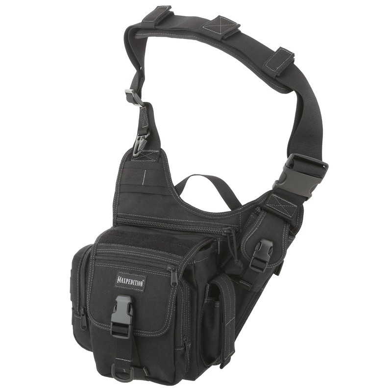 - Other features include a Grab handle made from 0.75" webbing, Paracord cinch storm collar to help keep contents out of the weather, Removable waist strap, 3 loops of PALS compatible webbing on left strap base for attaching other Maxpedition gear