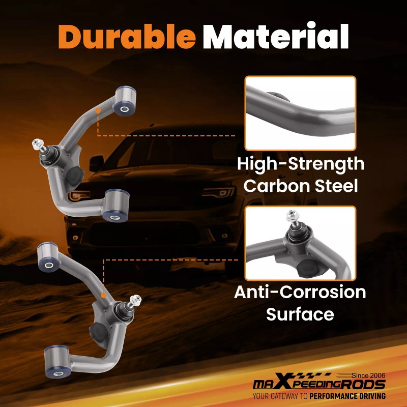 This is for a set of front upper control arms, compatible with 2-4 inch lifted vehicles, correct geometry for proper alignment and improved handling