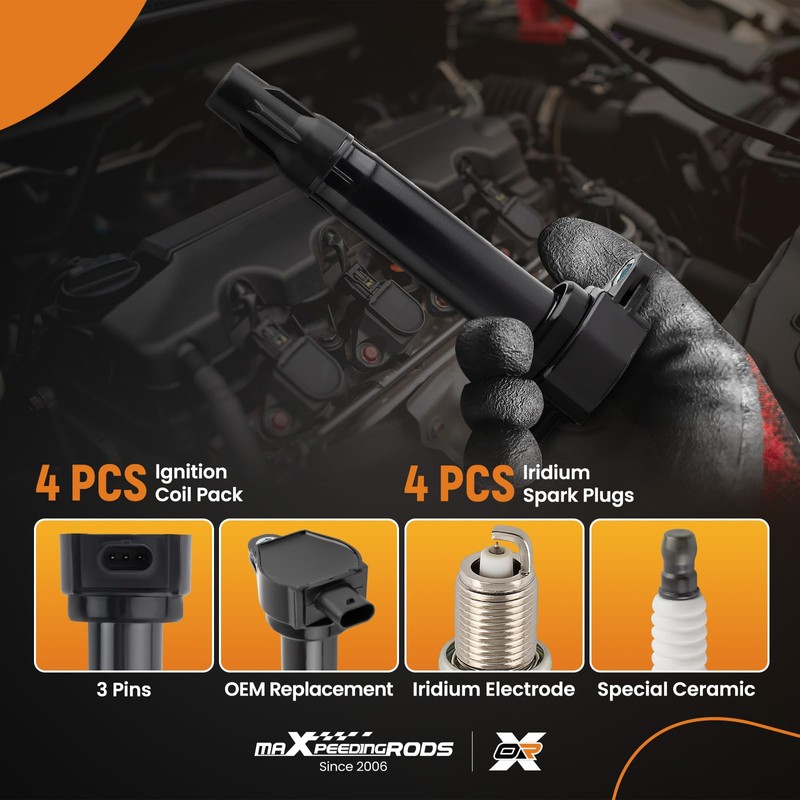 - Package Include: Set of 4 Ignition Coil Pack and 4PCS Spark Plugs. Premium packaging and foam cotton effectively protect the product. Our products undergo rigorous quality control processes to ensure their performance and reliability meet the standards