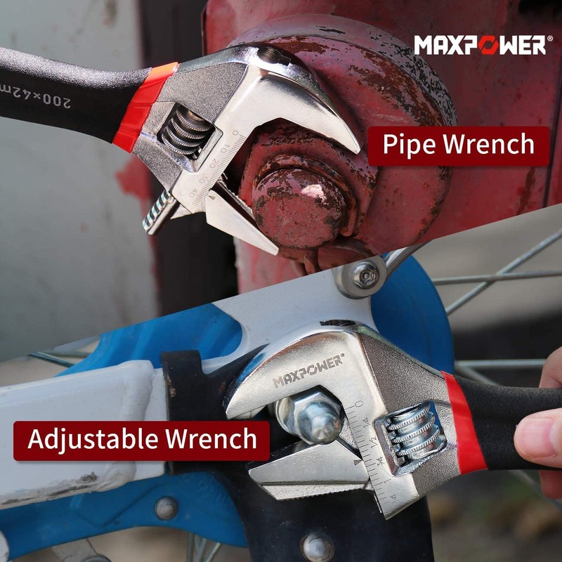 - 【MAX JAW CAPACITY】- 35mm opening capacity for 150mm (6-Inch) adjustable spanner. 48mm opening capacity for 200mm (8-Inch) adjustable spanner. 55% Wider jaw than standard wrench.