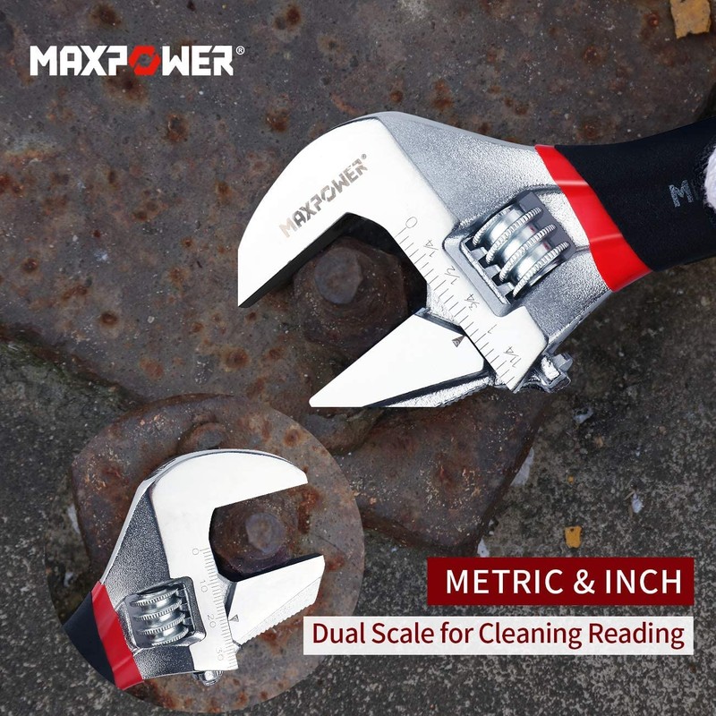 - 【DUAL-SIDES SCALE】- SAE & Metric double-sided scale for clear reading. It is easy to adjust the jaw with the smooth knurl roller. Chrome vanadium steel (Cr-V material) forging makes the multi-function wrench more durable to use.