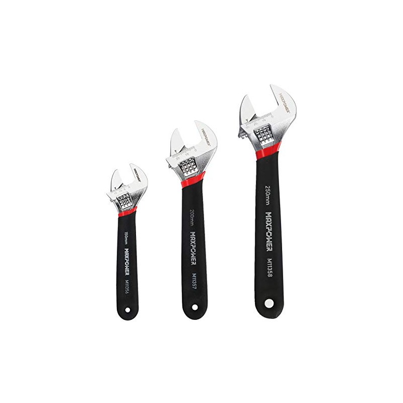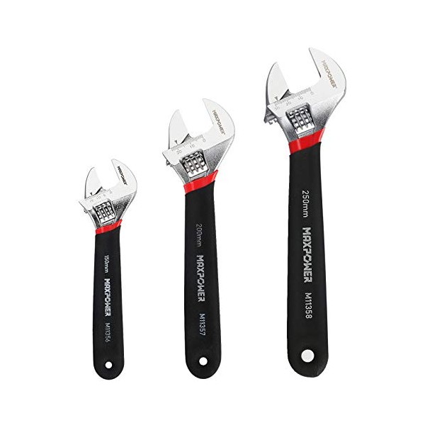 MAXPOWER Adjustable Spanner Set, 3PCs Adjustable Wrench Set Shifter Spanners with Soft Grip (6"/150mm, 8"/200mm and 10"/250mm)