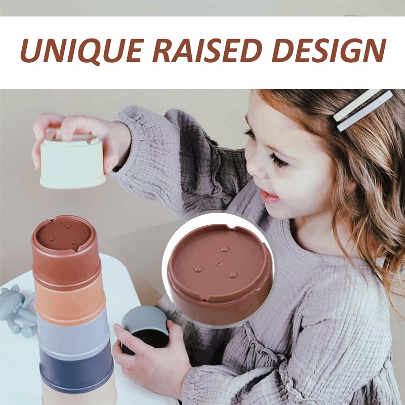 - Rounded Edges: Our stacking cups feature an integrated design with smooth edges for a delicate touch, 360° rounded corners ensure safe and enjoyable play without scratching fingers or damaging delicate skin.