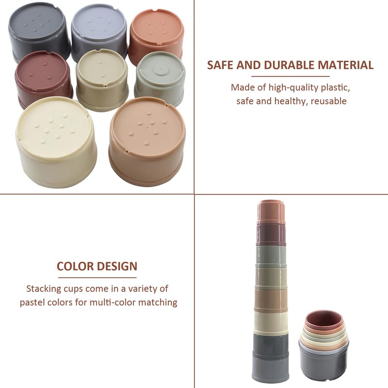 - Product material: Our stacking cups are made of plastic material, which is safe, non-toxic, has a smooth surface, is durable, not easy to break, and can be reused.