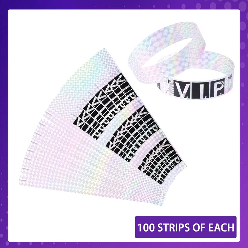 Maxqzin 200 Pcs Wristbands for Events, VIP Wristbands Paper Waterproof Bracelets Wrist Bands for Event Amusement Club Waterparks Concerts Festivals (Silver)