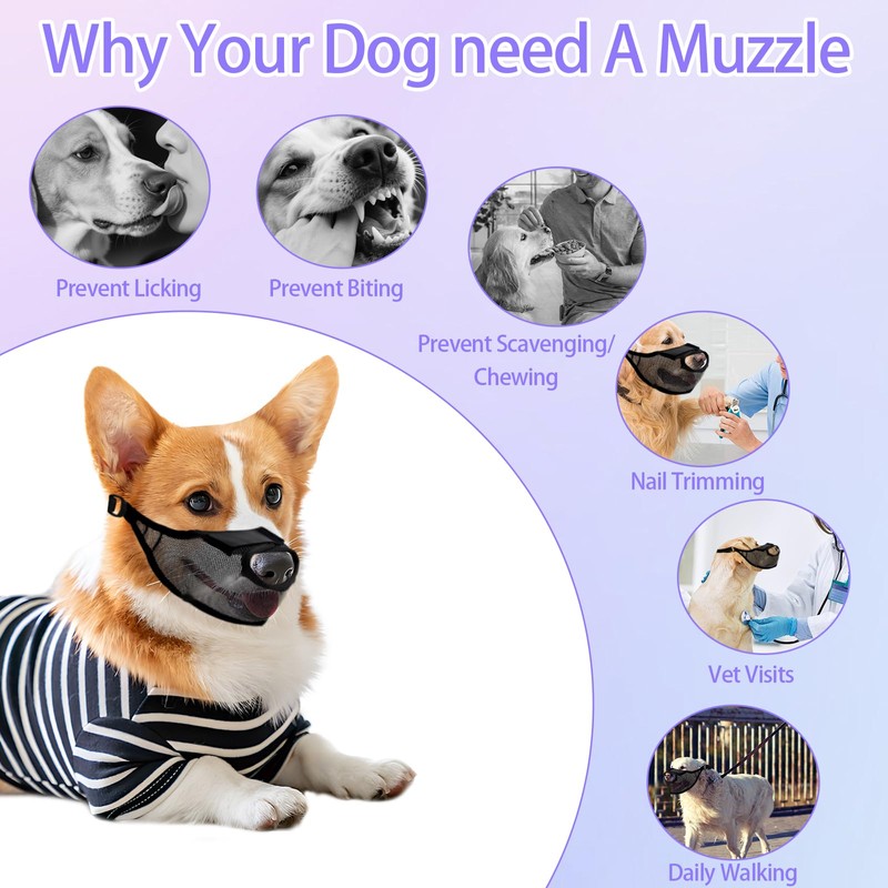 - 【Keep Your Dog And Other People Safe】The dog muzzles effectively prevent unwanted biting and chewing, ensure the safety of both your pet and those they interact with. Whether you're training, socializing, or simply need a dog mask for vet visits, grooming, or walking, the muzzle is a great choice.