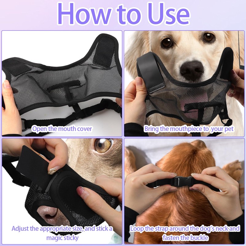 - 【Breathable and Lightweight】The dog mouth guard is made of premium mesh, which is soft and lightweight but resistant and durable. The ultra-breathable mesh design allows your dogs to breathe freely and feel more comfortable.