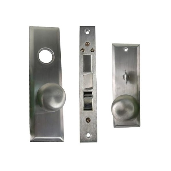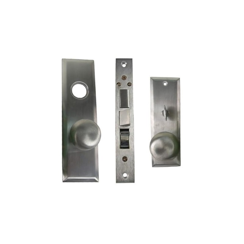 Maxtech (Like Marks 114A/26D) Satin Chrome 26D Left Hand Heavy Duty Mortise Entry Lockset, Self Adjusting Spindles with Screwless Knobs Through bolted Lock Set. 2-1/2" Backset, Deadbolt:1", front face plate:1-1/16" x 7-5/8". Cylinder on outside and thumb turn on inside. Commercial Mortise Locksets.