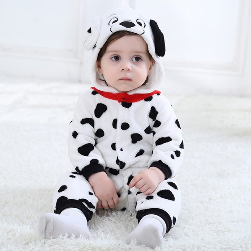 maxToonrain Baby Dalmatian Dog Costume Romper Toddler Boys & Girls Role-Playing Outfit with Zipper Hooded Flannel Dalmatian Onesie Pajamas (3-4 Year)