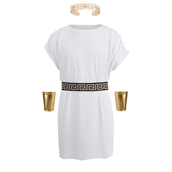 maxToonrain Roman Costume Men,Unisex Holloween Costumes Toga Costume Tunic Set with Greek Goddess Accessories Caesar Party Fancy Dress for Mens(White,M)