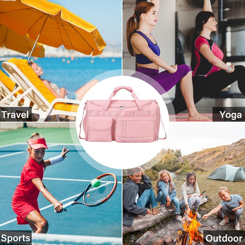 - ❤ MULTIFUNCTIONAL POCKETS: Travel bags have a spacious main compartment and compartment. Waterproof wet pocket allows wet and dry separation. Anti-theft zip pockets at the front and back for storing belongings. Side pockets for storing water bottles and umbrellas. Front pocket with Velcro closure for storing tissues and documents etc.
