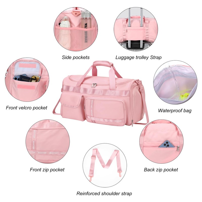 - ❤MULTIPURPOSE BAGS AS PERFECT GIFT:MAXTOP travel bag can be widely used as a business travel bag, short travel bag, weekend overnight bag, toiletry bag, camping bag, sports bag, gym bag, carry-on luggage, etc., it is a perfect gift for your wife, friends and parents.