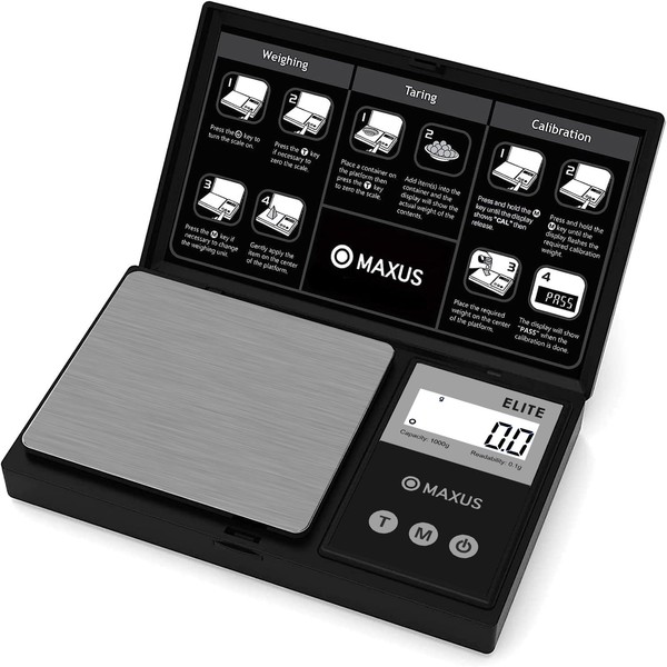 MAXUS Digital Gram Scale 1000g/0.1g, Small Food Scale with Backlit LCD, Mini Pocket Scale for Jewelry