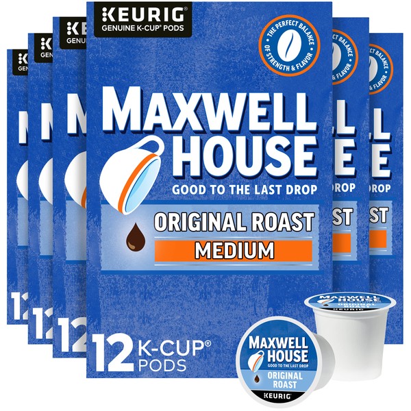 Maxwell House Original Roast Medium Roast K-Cup Coffee Pods (72 ct Pack, 6 Boxes of 12 Pods)